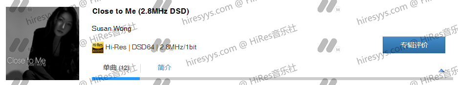 期待已久的黄翠珊(Susan Wong)专辑《Close to Me 》收录的全部歌曲由Susan历时三年在美国、香港、菲律宾的工作室录制,她与其他合作人一起花了无数个不眠之夜,将她的声音提高到最高水平。这张专辑是以高保真音响爱好者为中心录制的,是超高解析度音频的典范,随时可以在超一流的高保真音响上体验到大师级的认证音质。金曲予人的感觉四历久常新,经得起岁月的洗礼,市面的女声发烧专辑有甚多选择,但主唱者大多是成熟的老一派歌手,这张《Close to Me》却以清新和互动感的编曲,配上Susan Wong充满活力的演绎,可说是带来女声发烧录音一番新冲击,Susan的歌声散发着年轻女性的气息,既感性也性感,带磁性的嗓子成熟得来不失去活泼,并不刻意卖弄歌技,却令人感受到打从心底里抒发出的女性心事,是真正用心把感情从歌声里释放出来,而极度真实的录音把这一切仔细地呈现,空间感已达到最高发烧境界。