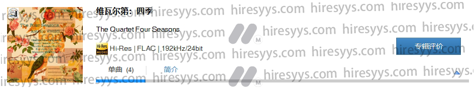 2014年,大雪的轻井泽·大贺音乐厅。以小提琴演奏家竹田诗织为首,4名青年演奏家组成四重奏乐团,演奏了维瓦尔第(Vivaldi)最为著名的弦乐四重奏作品《四季》。乐团成员们分别录制了每个季节为代表的乐章中的独奏部分,各自带来了对经典的全新诠释。其中春季为第二小提琴独奏,夏季为大提琴独奏,秋季为中提琴独奏,冬季为第一小提琴独奏。如此充满活力的“四季”,可谓至今未见。
