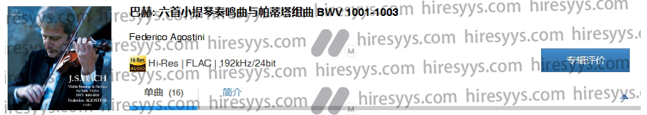 小提琴传奇大师阿戈斯蒂尼的无伴奏作品。