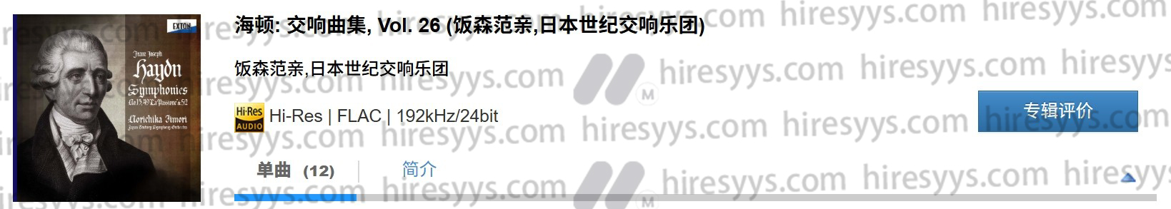 在线试听使用的文件为MP3,和您实际下载的高解析在音质上会有差距