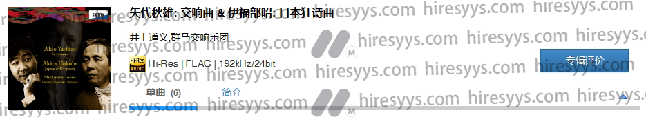 这是2021年11月群马交响乐团定期音乐会的现场录音,收录了伊福部昭的处女作《日本狂想曲》,以及曾师从伊福部昭的矢代秋雄在巴黎留学后创作的首部作品《交响曲》。曾与两位作曲家有过交集的井上道义,以真挚的态度诠释了这些结构复杂的乐曲,群马交响乐团则以充满力量的音响予以呼应。 这是已于去年底退休的指挥家井上道义与群马交响乐团在2021年的现场演出实录。矢代秋雄《交响曲》的第一乐章结构清晰,仿佛能让人置身于他留学时的巴黎,感受晨雾笼罩下的街景。在谐谑曲乐章与慢板乐章中,乐团的演奏细腻铺陈;终乐章则以富有感染力的旋律线条,将复杂的管弦乐编排勾勒成丰饶的音响织体。伊福部昭的《日本狂想曲》中,井上道义精准捕捉到了这位作曲家代表作的精髓。尤其是第二乐章《祭》,以从容自在的节奏为基底,通过灵活运用强弱对比与张力变化,既展现出民间艺术的充沛活力,也让旋律焕发出鲜活的生机与光彩。