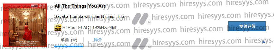 日本著名歌手、影视明星鹤田纱(Sayaka Tsuruta)远赴美国录制的专辑,联手钢琴名家Dan Nimmer,贝斯手David Wong及鼓手Pete Van Nostrand演绎多首名曲如:《I Didn't Know What Time It Was》, 《So In Love》, 《Alone Together》, 《Fly Me To The Moon》及《All The Things You Are》等,搭配鹤田纱温暖的歌声,细致的情感表露无遗。