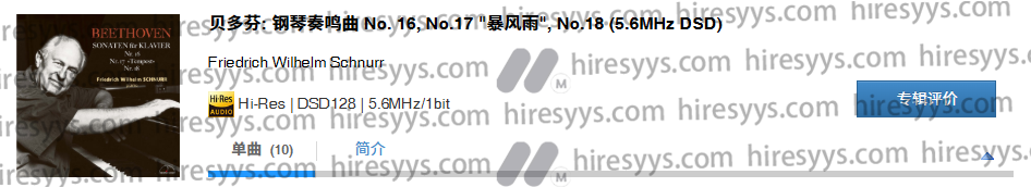贝多芬: 钢琴奏鸣曲 No. 16, No.17 "暴风雨", No.18 (5.6MHz DSD)